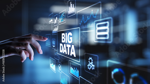 Sticker : Big data analytics platform, business intelligence and modern technology concept on vitual screen -