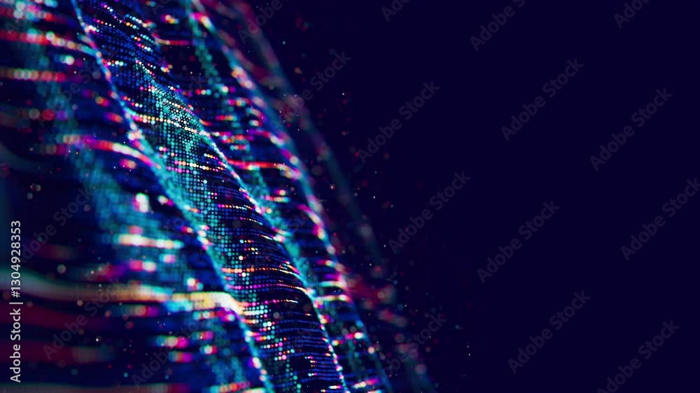 Sticker big data wave with streaming information qubits in cyberspace. digital quantum cloud data processing - Stickers Sticker big data wave with streaming information qubits in cyberspace. digital quantum cloud data processing - Stickers