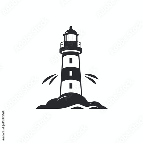 The watermark will not be included on Sticker.: Black simple lighthouse logo element on white background generative ai