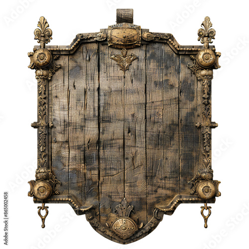 The watermark will not be included on Sticker.: Blank medieval sign isolated on transparent background generative ai