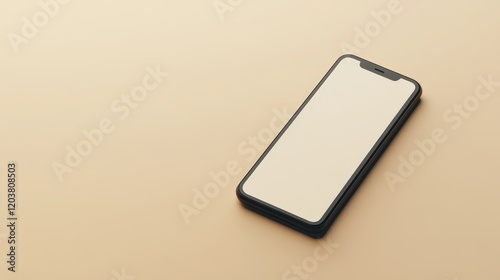Sticker : Blank mockup template of a smartphone resting on a plain beige background, with simple textures and