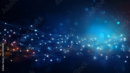 The watermark will not be included on Sticker.: Blue abstract background with a network grid and particles connected as technology computer data gra