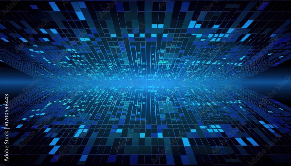 Sticker : Blue digital matrix futuristic grid with glowing squares abstract technology wallpaper for web desig