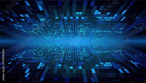 The watermark will not be included on Sticker.: Blue digital matrix futuristic grid with glowing squares abstract technology wallpaper for web desig