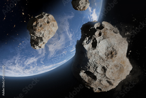 Blue earth and asteroids in the space - view of planet earth from space - elements of this image furniSticker