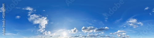 Sticker blue sky hdri 360 panorama with pink clouds before sunset with zenith for use in 3d graphics as sky