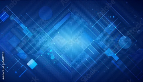 Sticker : Blue tech geometry abstract vector background with futuristic elements in shades of blue - modern di
