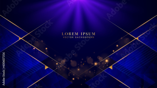 The watermark will not be included on Sticker.: Blue triangle elegant shine with slant golden lines, rays sparkle glowing effect and bokeh elements -