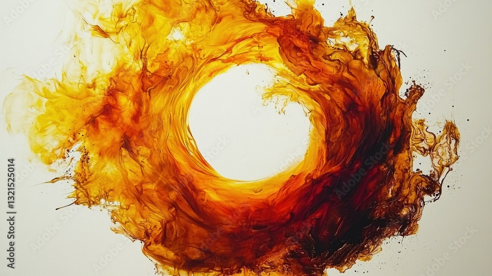 The watermark will not be included on Sticker.: Bright and soft abstract swirls of yellow, orange, and purple streaks creating dynamic circular form