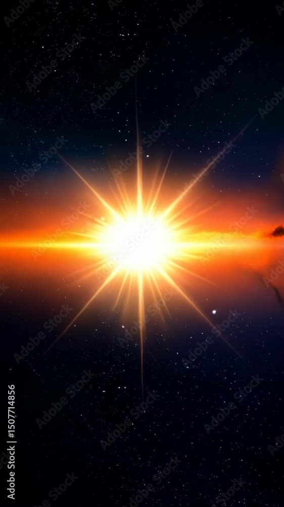 Bright cosmic starburst explosion in dark outer space with nebula clouds and sparkling starsSticker