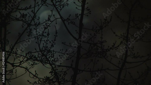 Sticker : Bright full moon on cloudy night with tree branches in foreground time lapse -
