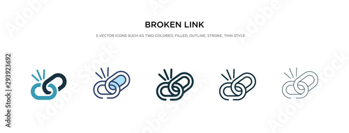 Sticker broken link icon in different style vector illustration. two colored and black broken link vector ic