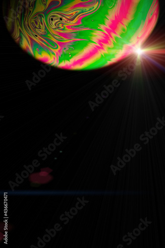 Sticker : Bubbles macro - globe planet earth in galaxy universe space with abstract sun on black background - ma