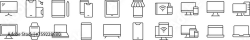 The watermark will not be included on Sticker.: Bundle of linear symbols of computers, phones, laptops - editable stroke - linear symbol for web sites