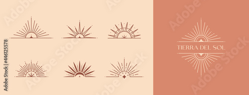 Sticker bundle of vector bohemian logo templates with sun,moon and sunburst.boho linear icons or symbols in  - Stickers Sticker bundle of vector bohemian logo templates with sun,moon and sunburst.boho linear icons or symbols in - Stickers