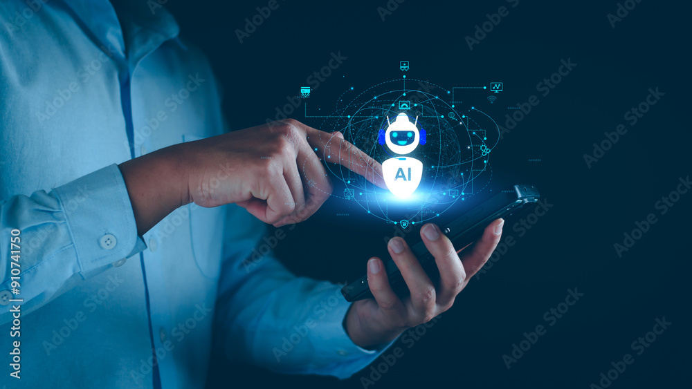 Sticker business iot ai automation concept, business man with virtual ai automation connect internet of thin - Stickers Sticker business iot ai automation concept, business man with virtual ai automation connect internet of thin - Stickers