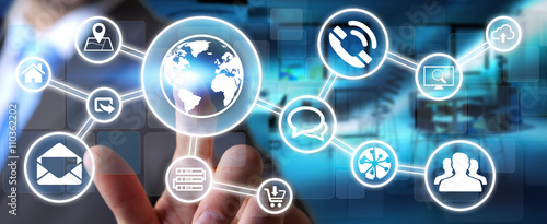 The watermark will not be included on Sticker.: Businessman using digital tactile screen interface with web icon