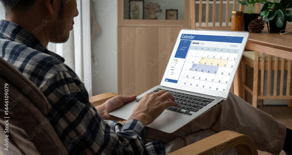 The watermark will not be included on Sticker.: Calendar on computer software application for schedule planning for personal organizer and online bu