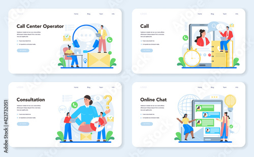 The watermark will not be included on Sticker.: Call center or technical support web banner or landing page set -