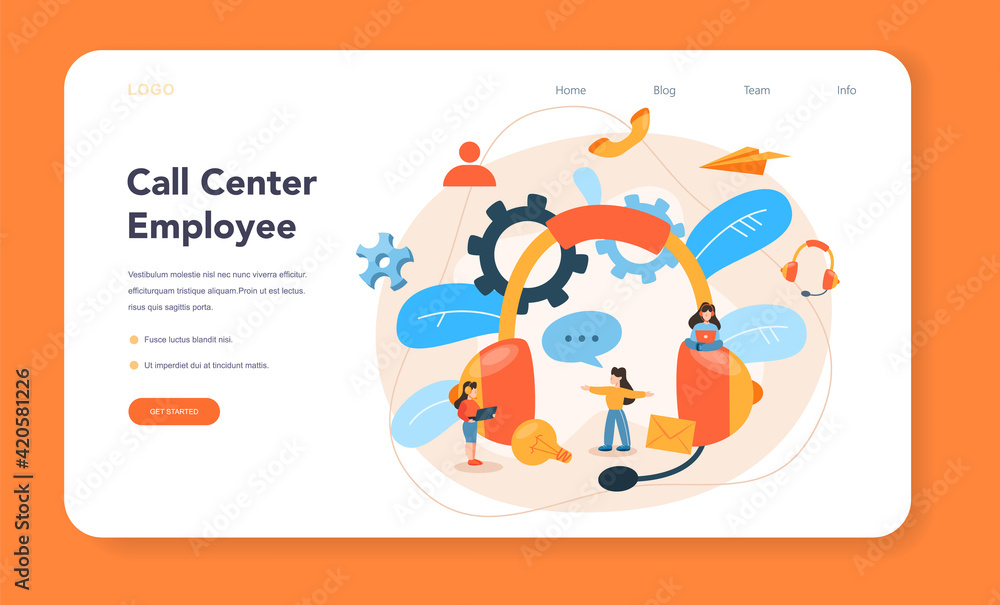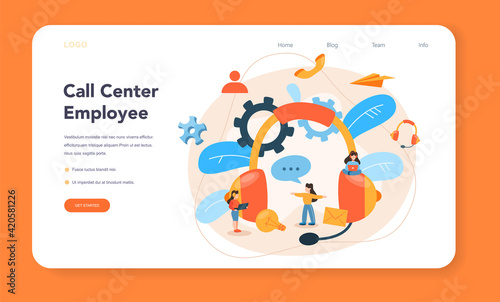 The watermark will not be included on Sticker.: Call center or technical support web banner or landing page -