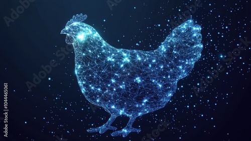 The watermark will not be included on Sticker.: Chicken and egg - low poly wireframe - vector polygonal image in the form of a starry sky or space, co