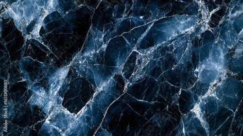 The watermark will not be included on Sticker.: Close-up of dark blue marble texture with intricate veining and patterns -