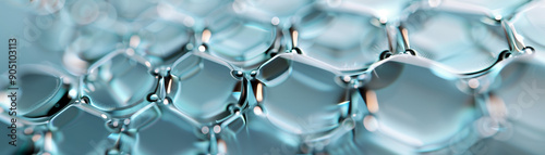 Sticker close-up of interconnected glass droplets showcasing unique patterns, reflecting light in a serene b