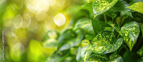 The watermark will not be included on Sticker.: Close up of pothos plant in the garden - copy space image - place for adding text and design