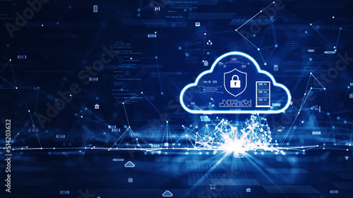 The watermark will not be included on Sticker.: Cloud and edge computing technology concept - there is a prominent large cloud icon on the right - the