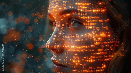 Sticker collage of human head, digits and various abstract elements on the subject of artificial intelligenc - Stickers Sticker collage of human head, digits and various abstract elements on the subject of artificial intelligenc - Stickers