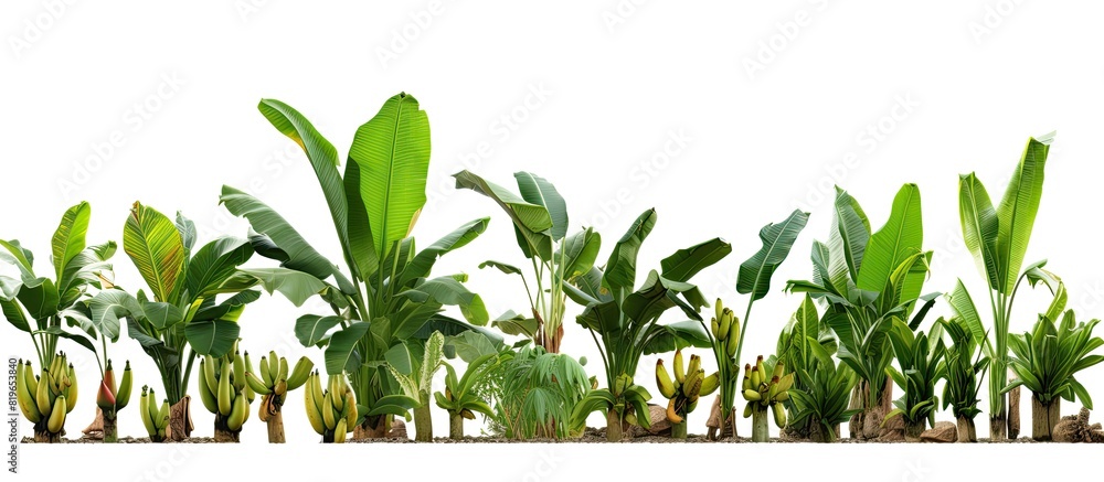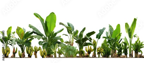 Collection of banana trees isolated on white background for garden design with copy space image econSticker