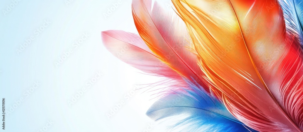 Sticker : Colorful abstract feather design with smooth gradient in blue, orange, and red tones and ample copy