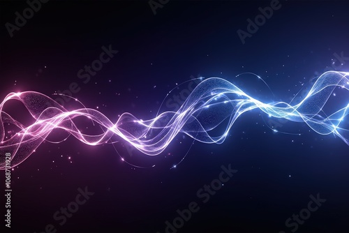 The watermark will not be included on Sticker.: Colorful abstract light waves on dark background with sparkling effects -