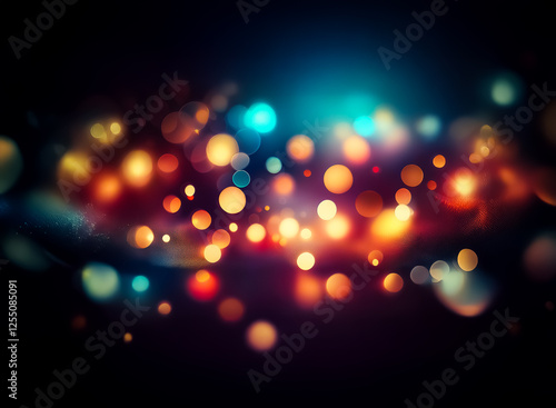 The watermark will not be included on Sticker.: Colorful bokeh lights illuminate a dark backdrop, creating a festive and dreamy atmosphere with blur
