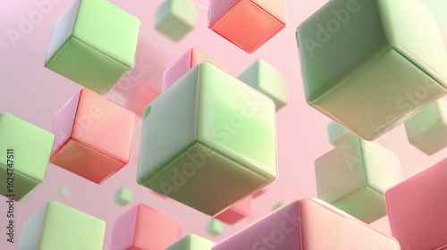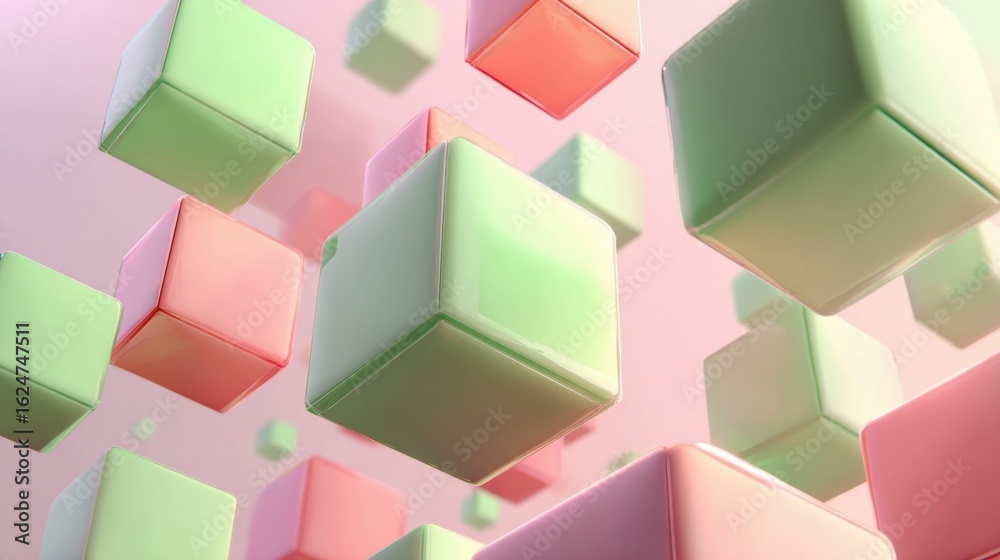 Colorful floating cubes in abstract 3d space with soft lightingSticker