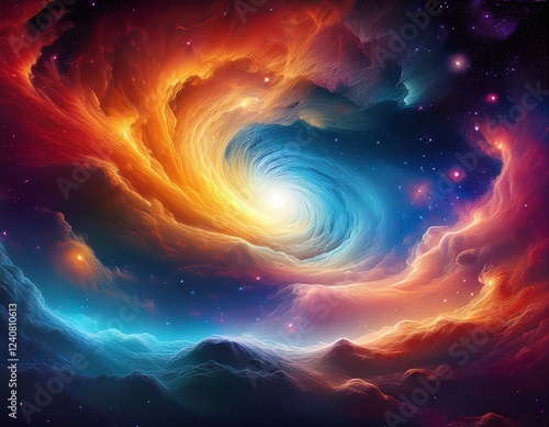 Colorful nebula cloud swirling with mesmerizing vortex in the vast expanse of space background for wSticker