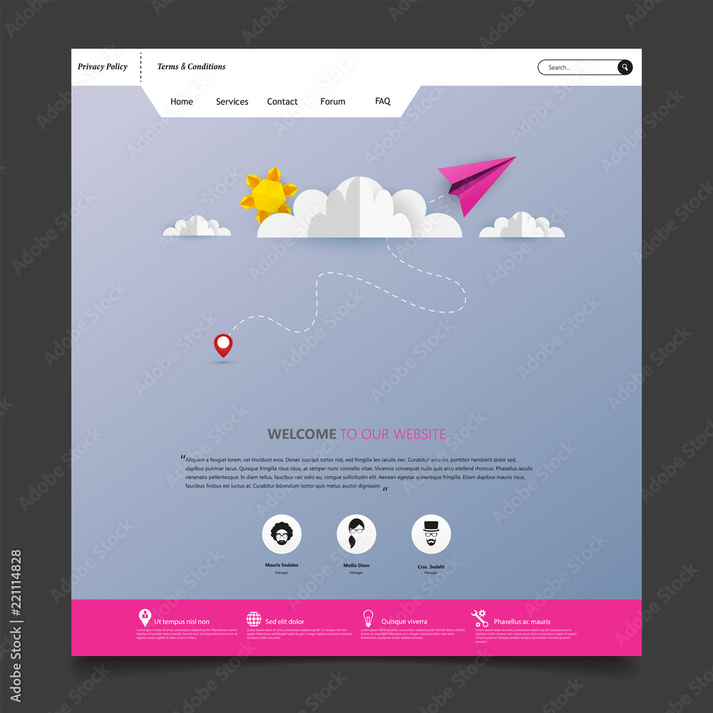 Sticker : Colorful vector website with origami paper clouds and sky header design -
