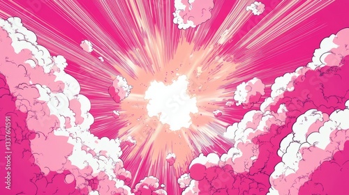 Sticker comic book style dynamic pink background with halftone dots and speed lines creating a vibrant retro