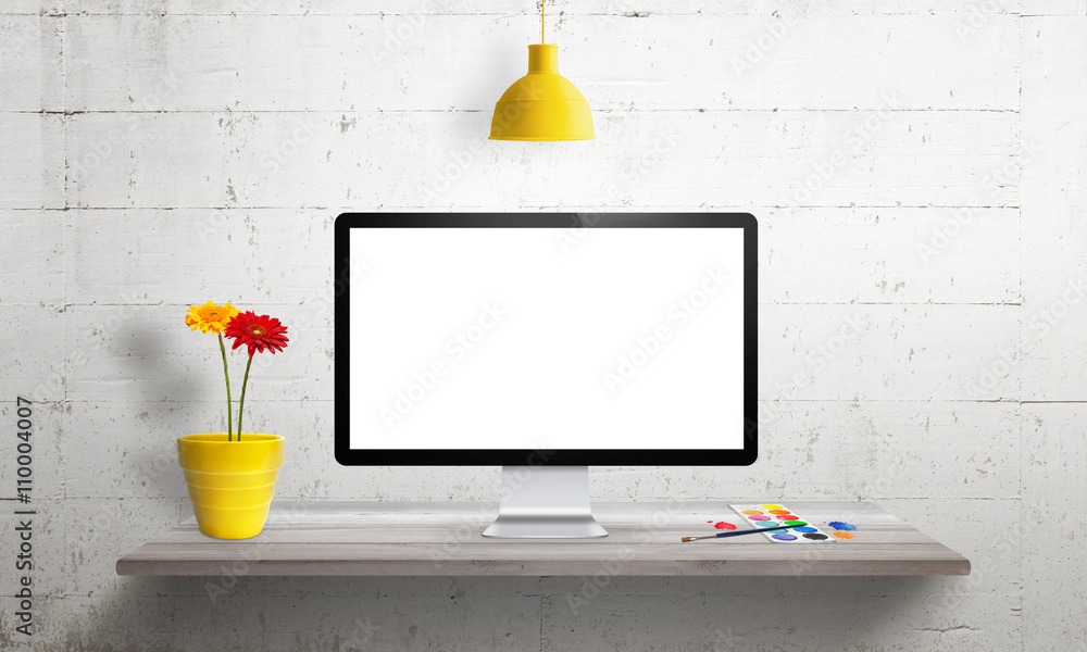 Sticker : Computer with isolated screen for mockup on office desk -