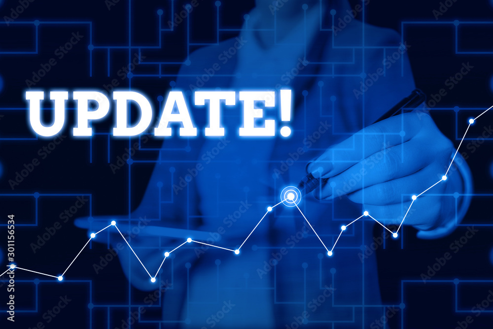 The watermark will not be included on Sticker.: Conceptual hand writing showing update - concept meaning make something more modern or up to date lik