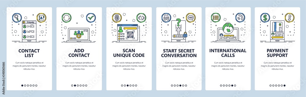 Sticker : Contacts website and mobile app onboarding screens vector template