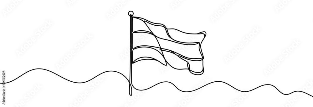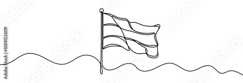 Sticker continuous line drawing of flag. single line drawing of a silhouette of a flag. line art of flag. ve