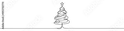 The watermark will not be included on Sticker.: Continuous linear drawing of christmas tree - one line drawing christmas tree - christmas tree in one