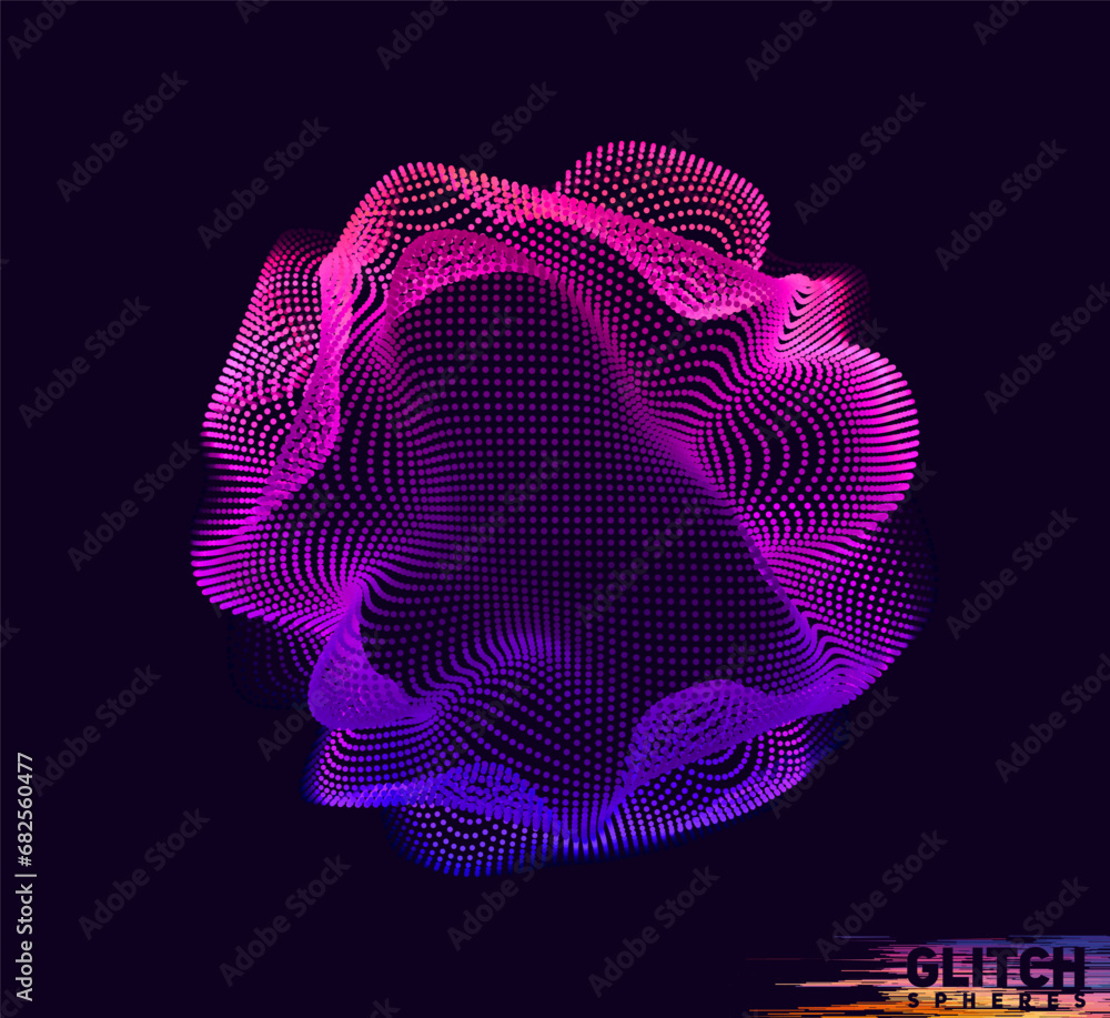The watermark will not be included on Sticker.: Corrupted violet point sphere - abstract vector colorful mesh on dark background - futuristic style ca