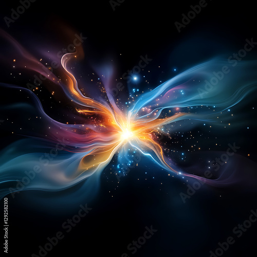 Cosmic explosion of color abstract art digital creation dark background close-up energy and motionSticker