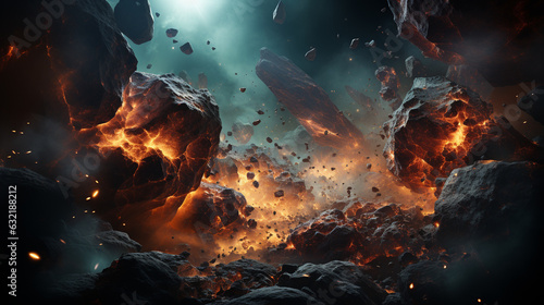 Cosmic space rocks presented in a dramatic and action-packed scene - generative aiSticker