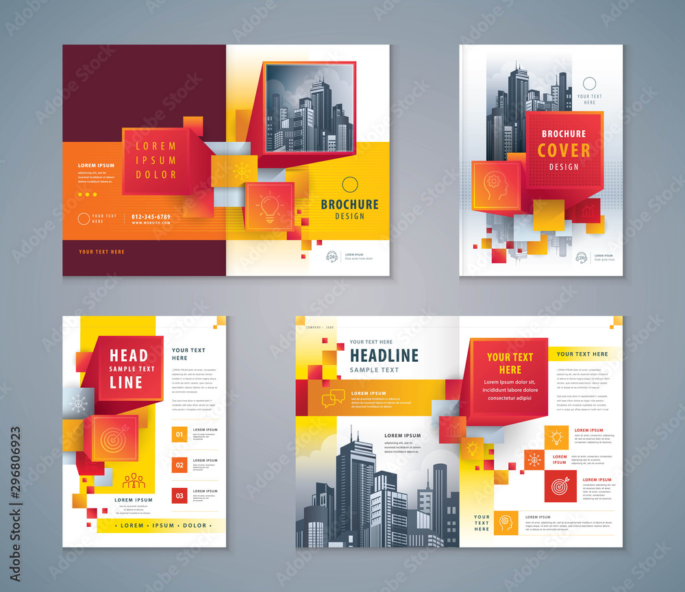 Sticker : Cover book design set, abstract 3d cube blocks background vector