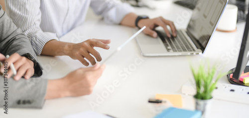 Sticker : Cropped shot of young professional ux web developer team working on their project together