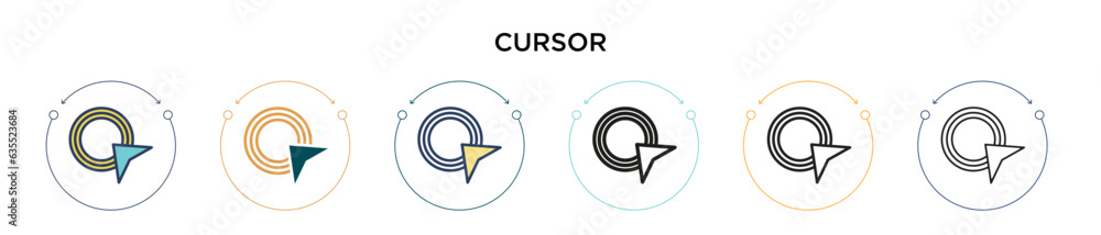 Cursor icon in filled, thin line, outline and stroke style - vector illustration of two colored and bSticker