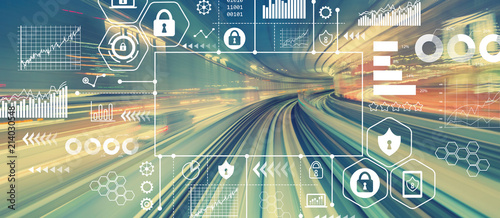 Sticker : Cyber security with abstract high speed technology pov motion blurred image